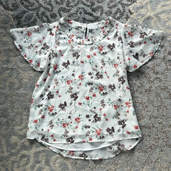 Pleione Floral Flutter Sleeve Layered Top White XS - $27 - From Samantha