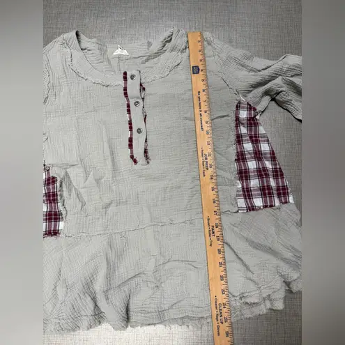 POL Anthropologie Plaid L Gray Wash Short Sleeve Thermal Tunic Top Shirt.