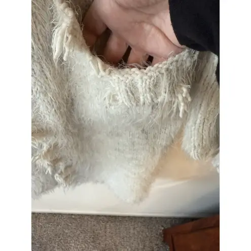 POL Beige/White Eyelash Hooded Open Front Cardigan Sweater in Size M is a stylish and versatile piec... Show more