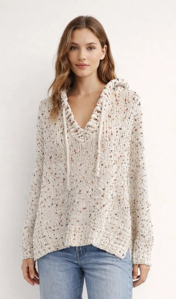 POL Confetti Speckled Cream V-Neck Pullover Distressed Sweater size Large - $35 - From Nicole