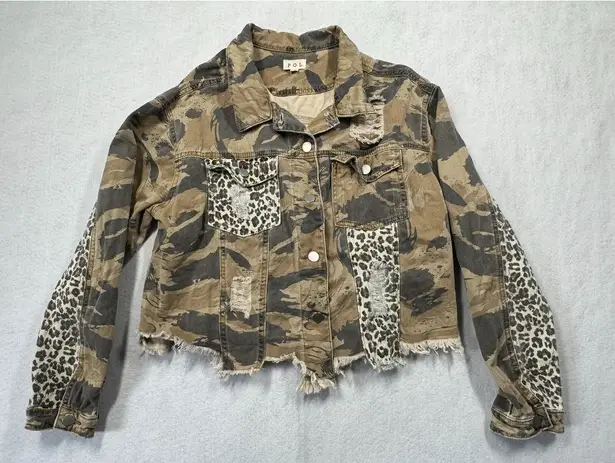 POL Denim Jacket Style BWT636 Size: Womens S Features: • Mix of camouflage and leopard ani... Show more