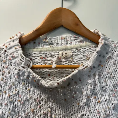POL Distressed Confetti Sweater White Knit Crochet Loose Knit Colorful Boho Artsy Speckled Frayed L... Show more