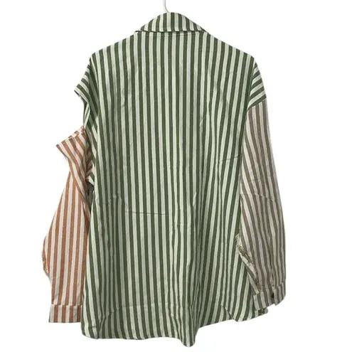 POL Striped Green & Pink Button Down Shirt,Approx measurement Pit to Pit 22”,Length 22”-27”.NWT