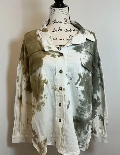 Embrace a cool and casual vibe with this POL tie-dye shirt jacket. The unique green and white tie-dy... Show more