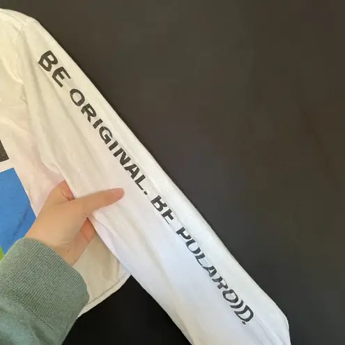 A cropped long sleeved shirt with polaroid decal. Labeled a women's size small.