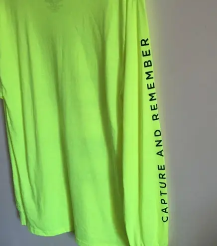 Neon yellow graphic long sleeve tee by Polaroid. In perfect like new condition. Has image of a Pol... Show more