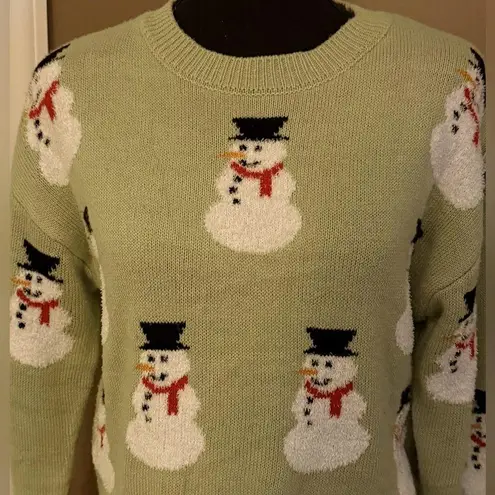 Super cute and fun! Beautiful mint green color with fuzzy snowmen on front and both sleeves. Crewne... Show more