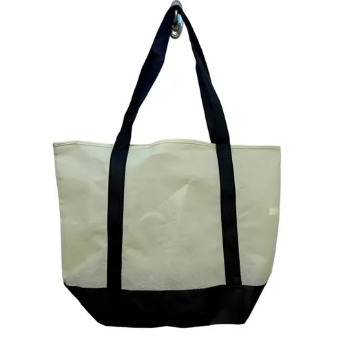 Poshmark branded cream and black tote bag Front pocket Very lightweight canvas Roomy interior... Show more