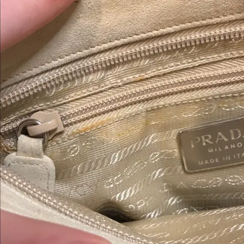Prada Milano cream suede shoulder bag with gunmetal chain. I believe this is an older style so I don... Show more