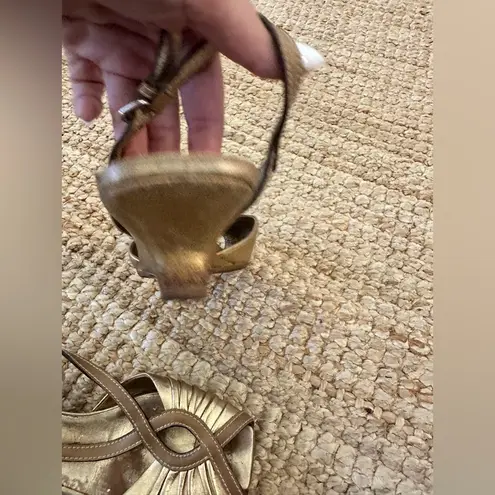 Step out in style with these elegant Prada sandals. Featuring a stunning gold and brown design, thes... Show more