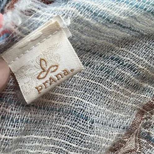 PRANA Mae Scarf Wrap Fringed Striped Tan Blue Cream Multicolored 100% Wool - $25 - From Karen