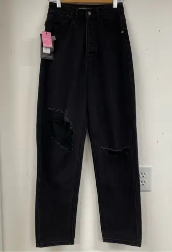 Pretty Little Thing Black High Rise Button Fly Womens Jeans Size 2 Distressed New with tags Quick... Show more