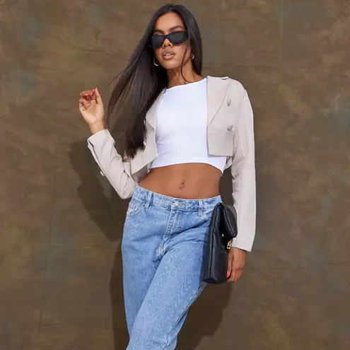 Stylish beige cropped blazer. Perfect for layering. We are loving this blazer for your new season wa... Show more