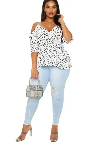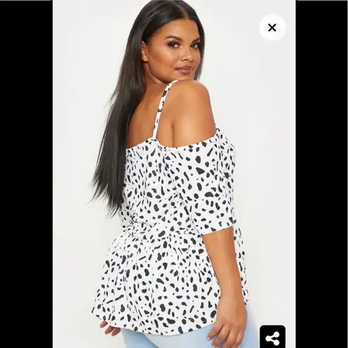 Pretty Little Thing Dalmatian cold shoulder top. Size 16. NWT. Approximate measurements: Bust 17.5”... Show more