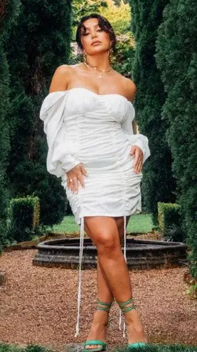PrettyLittleThing Size 12 Ivory ruched long sleeve dress Stretchy comfortable fabric Great used... Show more