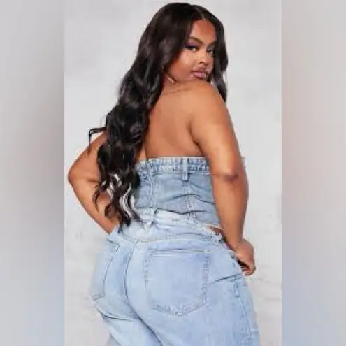 Be ready to turn heads in this must-have corset top. Featuring a light blue denim wash material with... Show more