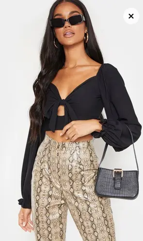 Steal all the stares with this dreamy crop top. Featuring a black fabric with puff sleeves and a tie... Show more