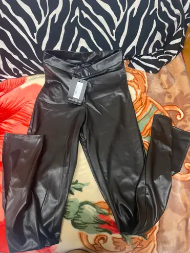 • NWT • black vinyl pants w slit on legs and ruched on back • super cute just not my size • “V” sha... Show more