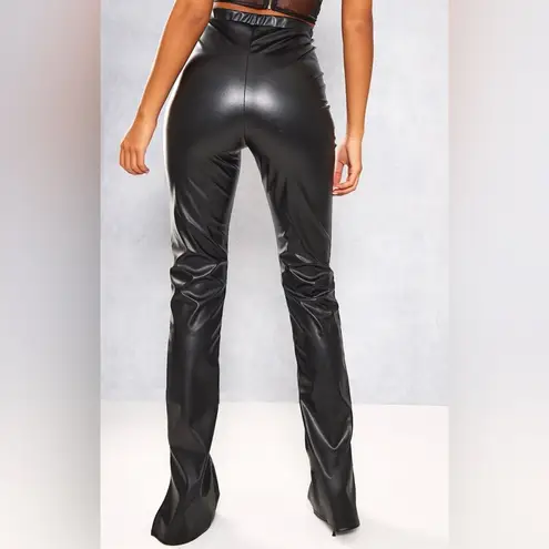Sleek black high waisted faux leather pants featuring split hem. Fit is true to size (tall length).... Show more