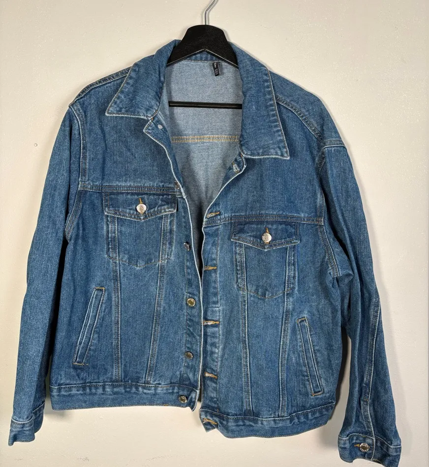 Chic med blue denim jacket. Features classic collar and button details. Size :US6/ UK10 Color: Blue... Show more