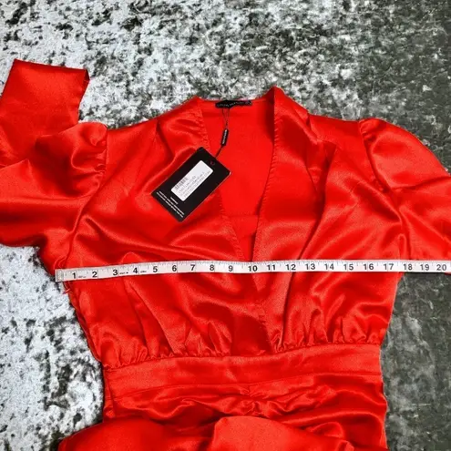 - New - Puff sleeves - Ruched Skirt design - Back slit - Side zip closure