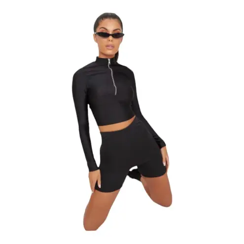 PrettyLittleThing Scuba Wet Look Bike Shorts Size 12 CLW6853 Black Scuba Wet Look Bike Short Featur... Show more