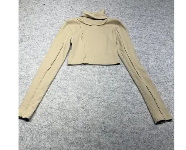 PrettyLittleThing Sweater Womens US 2 Beige Long Sleeve Ribbed Turtleneck Crop Top Condition: Gently... Show more