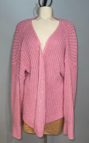 Cozy oversized open-front cardigan in a soft pink chunky knit. Long sleeves, relaxed fit, perfect fo... Show more