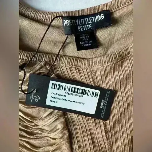 NWT PrettyLittleThings Set of 2 Petite Taupe Textured Jersey Mini Skirt Size 4 and Top Size 6. Super... Show more