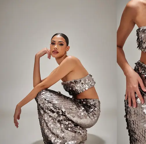 Pretty Little Thing SEQUIN BANDEAU CROP TOP Silver Size 2 - $8 - From Rachel