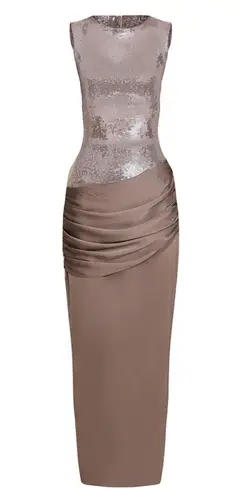 PLT dark taupe sequin sleeveless drape detail maxi dress size 4, worn once. Sold out online.