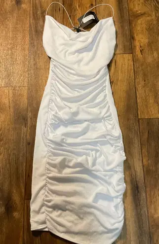 Pretty Little Things Dress Size 8 Fitted Spaghetti Straps Rouched White Knee Length New With Tags Co... Show more