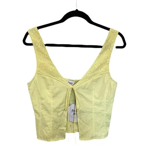 Features an open front design, single tie fastening at bust, slim fitting style, lace detailing, non... Show more