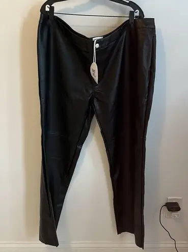 Black faux leather pants. Description in photos. NWT 30” inseam 12.5” rise 20.5” across waist