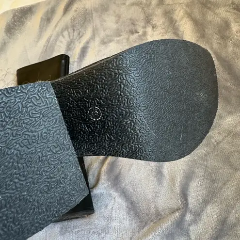 Good condition Gently used Black color Boots, platform base, square toe, block heel Faux leather m... Show more
