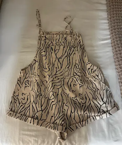 Cream and black zebra romper with a naturally faded look. Pockets in front and back & adjustable sho... Show more