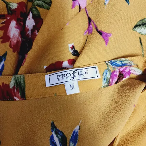 Profile Apparel Mustard Floral Split Neck ¾ Sleeve Blouse Size Medium - $27 - From Gina