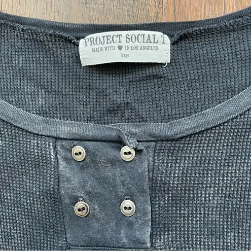 Authentic PROJECT SOCIAL T black top size Large, in like new condition. Purposely distressed fabri... Show more