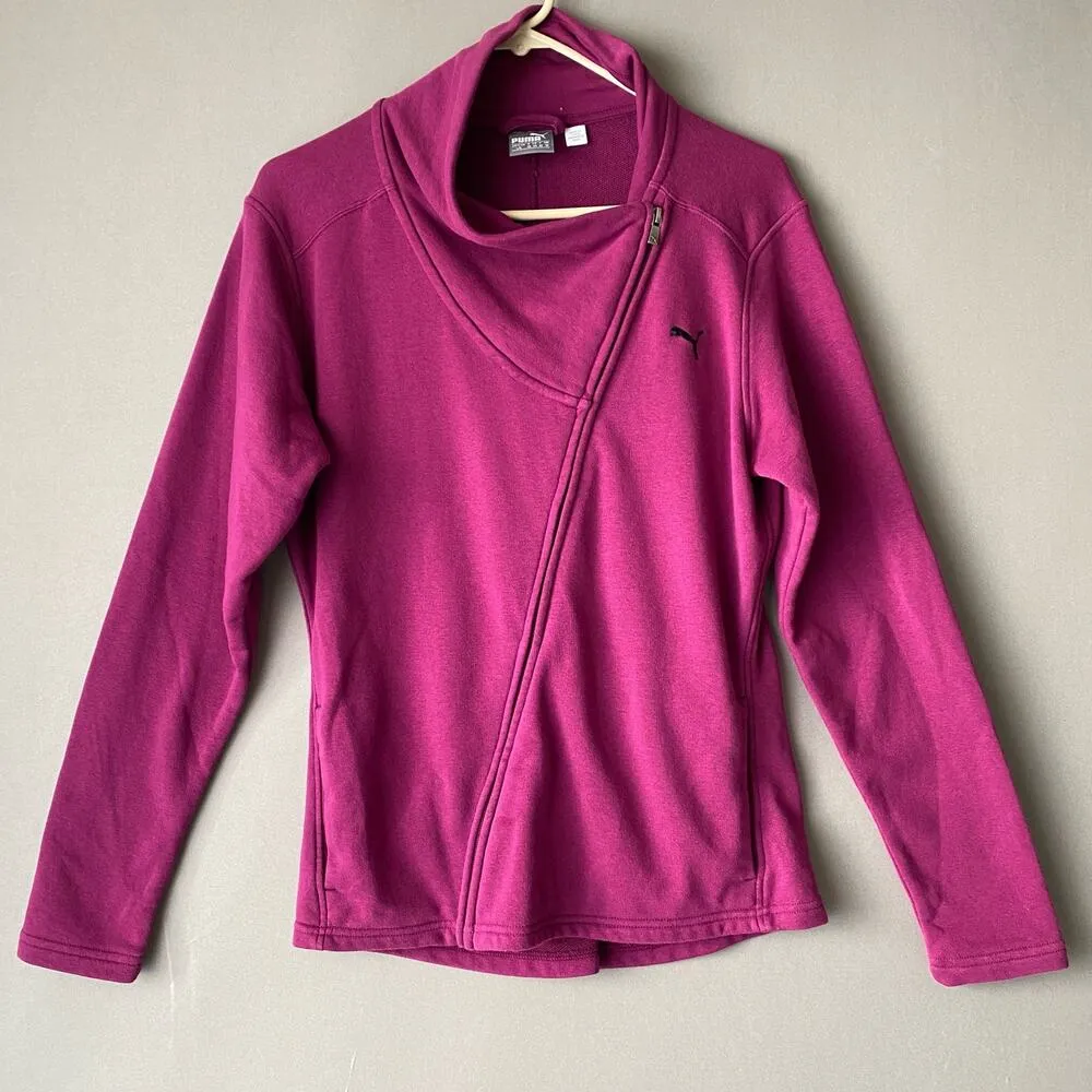 Puma sz L fuchsia pink diagonal zip sweat coat Gently used with no flaws. measurements: Armpit t... Show more