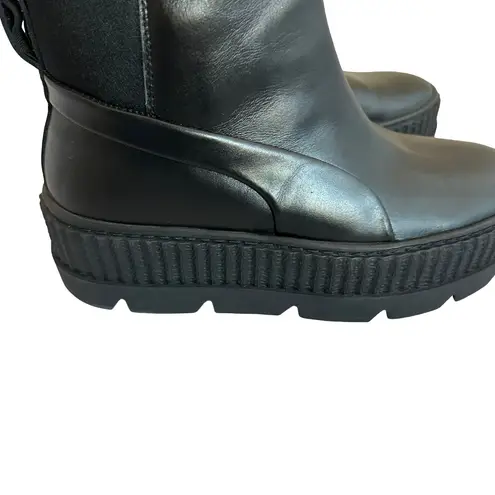Puma x Fenty Size 7 Women's US Black chelsea boots in pull-on styling Platform; Round toe The back is very stretchy and has a large 3D PUMA logo across the back Shaft height: 6", Platform height: 2" In excellent condition; no scuffs, chips or flaws Insoles and outsoles are very clean I am always open to offers - bundle & save!