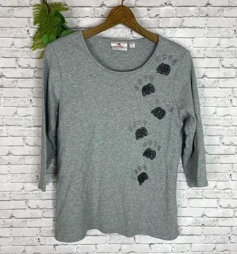 Quacker Factory Gray Paw Print Bedazzled Over The Shoulder Long Sleeve Tee Size M - $20 - From Anna