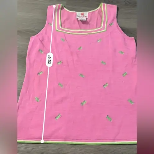 Quacker Factory Silk Blend Pink & Green Grasshopper Sleeveless Top Sleeveless Square neck Grasshoppe... Show more