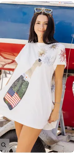 QUEEN OF SPARKLES White USA Popping Champagne Tee Dress Sequin Embellished 2XL Size XXL - $175 - From Heather