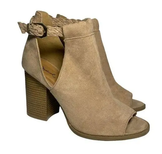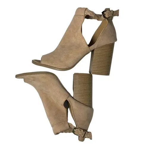 . Adjustable buckle ankle strap closure, stacked heel. Heel approximately 3.5 inches. Light signs of... Show more