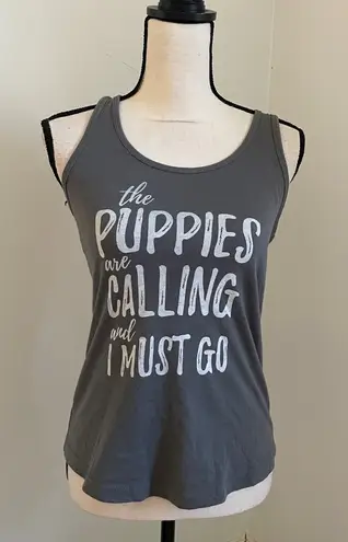 condition: excellent material: cotton, polyester measurements: 15" pit to pit, 24" shoulder to hem notes: racerback, cute, dogs, casual tags: #racerback #razorback #casual #tanktop #dog #puppy #puppies #graphic #workout #athleisure #lounge Racerback Charcoal Graphic Tank Small Puppies Are Calling Workout Casual Shirt Embrace casual comfort with this charcoal tank top featuring a fun 'Puppies Are Calling' graphic. Ideal for relaxed outings.