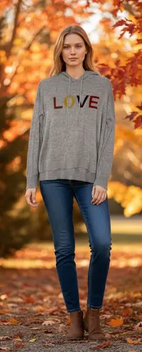 Sweater weather “Love”Neutral Fall Vibes High Low Hoodie Sweater Sz M Approx A31 Tan Size M - $38 - From Anna