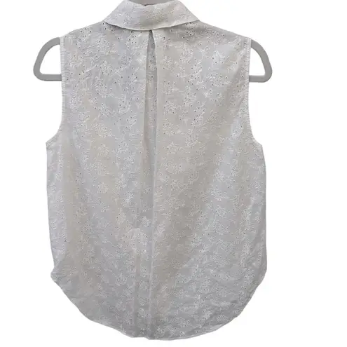 RAG & BONE APRIL EYELET BUTTON DOWN WHITE SLEEVELESS TOP Signature horn fisheye buttons Size XS A... Show more