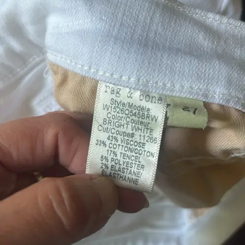 Bright white Capri length jeans. Five pocket, front button and zipper close. 8 1/2” rise 25” inseam... Show more