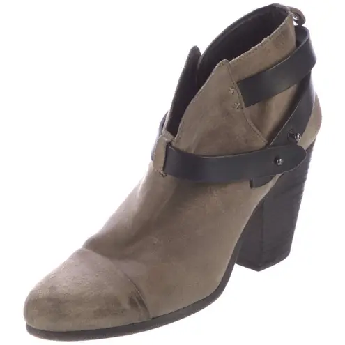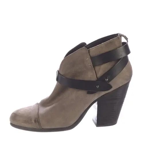 Wrap-around leather straps lend a slightly western air to these unique waxed suede ankle boots. Stac... Show more