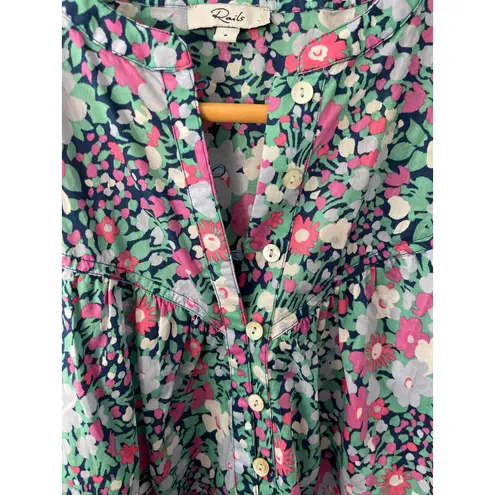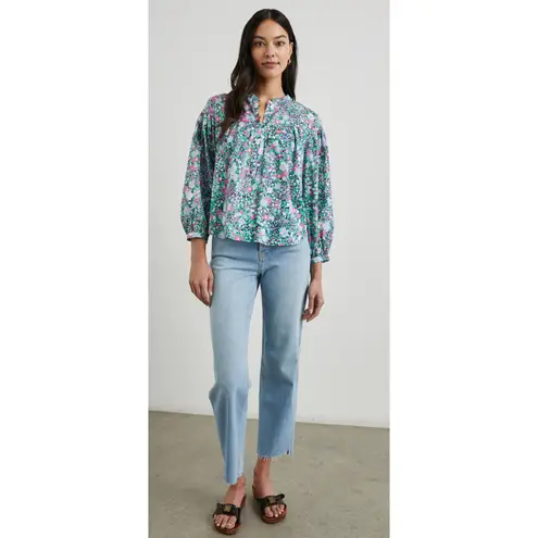Excellent condition - no signs of wear and no flaws Retails for $198 - still online! Cut from a dark floral lightweight beach cotton, the Ellison features balloon sleeves and a half-collar for a vintage-inspired finish for work to weekend. 100% Cotton. Imported. 3/4 button front Ruffled shoulder details Button wrists Beautiful color way and florals Approximate measurements - laid flat: Bust: 38-39” Length: 24”